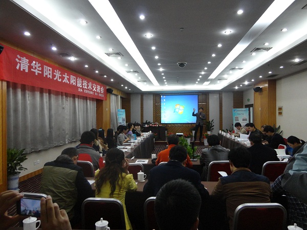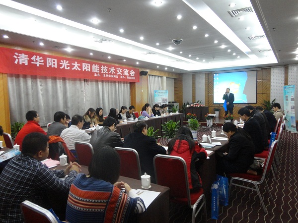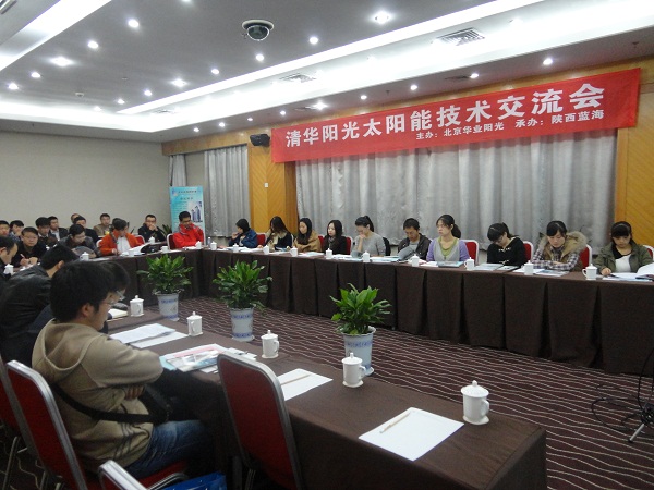 2013年11月6日,由北京華業(yè)陽光新能源有限公司、陜西藍(lán)海智能科技有限公司聯(lián)合舉辦的“清華陽光太陽能新產(chǎn)品推介暨技術(shù)交流會”取得圓滿成功。本次會議加深了我公司與各設(shè)計院之間的交流,探討、解決太陽能熱水系統(tǒng)工程實(shí)際設(shè)計、施工中的問題和困難,努力將國家節(jié)能減排政策落到實(shí)處,與各個設(shè)計院取得長遠(yuǎn)合作。